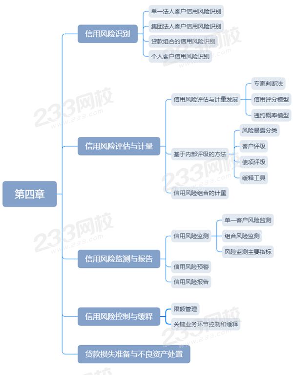 为了使银行从业资格考试考生备考更方便,学习更轻松,学霸君根据2019年的考试大纲(2020年考试大纲暂时未出)为各位小伙伴准备了银行从业初级《风险管理》的思维导图,第四章内容:信用风险管理,具体如下: