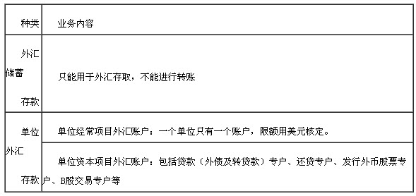 按账户性质区分为外汇结算账户(用于转账等资金清算支付)、资本项目账户、外汇储蓄账户。