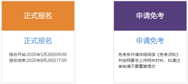 2、注册并登录,然后点击主页的“申请免考”(以2020年银行从业资格考试为例);