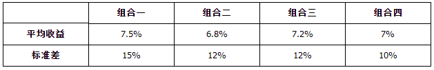 组合四的夏普比率最高,且满足必要投资回报率为7%的要求,故组合四最适合。