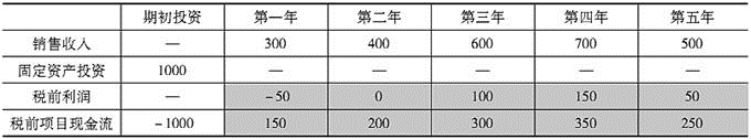 第三年税前利润=600×(1-50%)-200=100(万元),税前项目现金流=600×(1-50%)=300(万元);