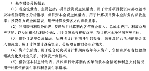 ①现金流量表 ②利润表与利润分配表 ③财务计算现金流量表 ④资产负债表 ⑤借款还本付息计划表 |