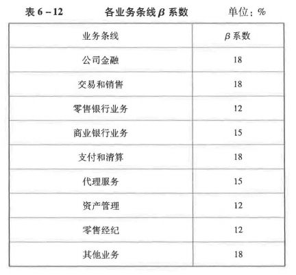 答察解析: 各业务条线的操作风险资本系数如下:①零售银行、资产管理和零售经纪业务条线的操作风险资本系数为β12%;②商业银行和代理服务业务条线的操作风险资本系数为β15%;③公司金融、支付和清算、交易和销售以及其他业务条线的操作风险资本系数为β18%。