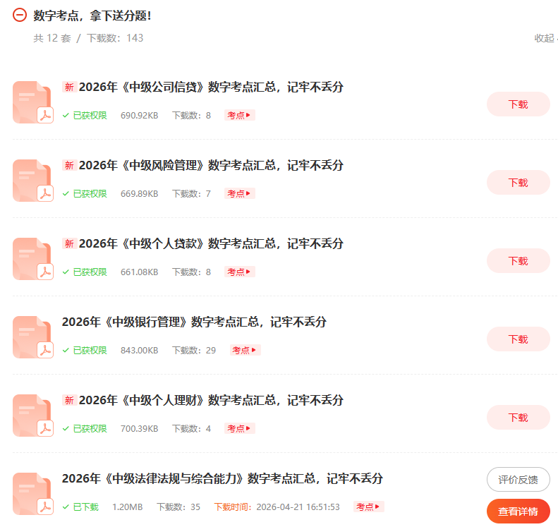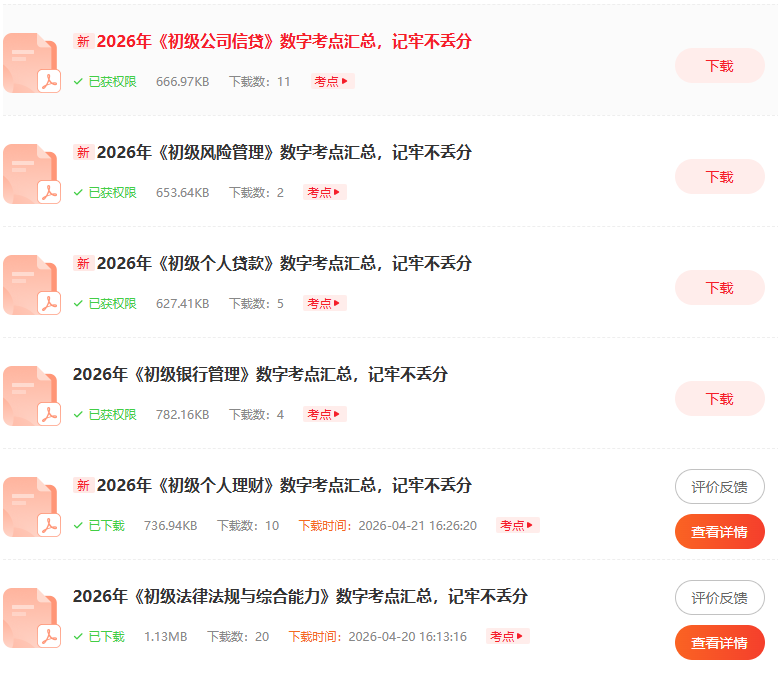 注意:《2026年银行从业考试数字考点》(初中级12科)已经全部可以下载pdf了!如果需要备考其他专业或备考中级的考生,可以点击下方图片进入下载!