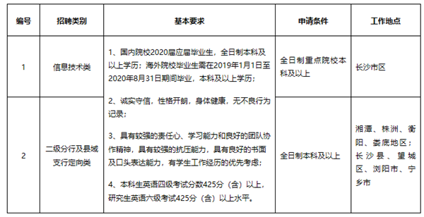 招商银行官网在2020年3月3日发布了《2020年长沙分行春季校园招聘公告》,公告中主要的招聘内容如下: