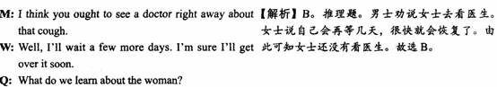 系统解析:Most people feel lonely sometimes, but it usually only lasts between a few minutes and a few hours. For some people though, loneliness can last for years. Physiologists are studying this complex phenomenon and have identified three different types of loneliness. The first kind of loneliness is temporary. It usually disappears quickly and does not require any special attention. (33) The second kind situational loneliness is a natural result of a particular situation, for example,a divorce or moving to a new place. Although this kind of loneliness can cause physical problems, it usually does not lasts more than a year. Unlike the second type, the third kind of loneliness usually lasts more than 2 years and has no specific cause. (34) People who experienced habitual loneliness have problems socializing and becoming close to others. Unfortunately, many of them think there is little or nothing they can do about it. Psychologists agree that one important factor in loneliness is a person's social contacts, for example, friends, family members etc. We depend on various people for different reasons. For instance, our families give us emotional supports and our friends share similar interest and activities. However psychologists have found that the number of social contacts we have is not the only reason for loneliness. (35) It's more important how many social contacts we think or expect we should have. In other words, though lonely people may have many social contacts, they sometimes feel they should have more, they question their own popularity.