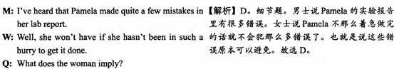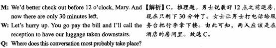 系统解析:推理题。男士一直在和女士商量行程,应该何时会见Romer0先生。所以说男士应该是女士的助手。故选C。