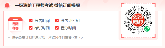 温馨提示:一级消防工程师考试报名仅一次机会,无补报名!大家可扫码预约报名提醒,及时进行报考!