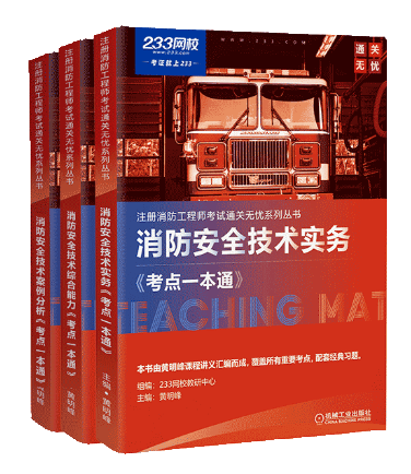注册消防工程师通关无忧系列丛书《考点一本通》由233网校的专业教研团队组织编写,消防培训界“大神”黄明峰(学员称“消防大黄峰”,233网校独家主讲3科)老师主编,并联合原注册消防工程师考试官方教材出版社-机械工业出版社出版。本套书籍共分为三册,包括《消防安全技术实务考点一本通》、《消防安全技术综合能力考点一本通》、《消防安全案例分析考点一本通》。本书作为消防备考系列重点推荐书目之一,经编委们对教材、规范深度剖析,加上教研对消防专业的深度了解、丰富经验,结合历年考题全面分析、将三科官方教材广泛内容和众多规范高度汇集、融汇贯通。