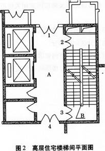 22、 图2为一高层住宅楼梯间的平面图,请回答问题: