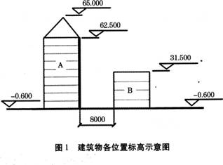21、有两栋民用建筑物,各个位置的标高如图1所示,其中A建筑物耐火等级为一级,B建筑物耐火等级为二级,两建筑物之间的防火间距为8m,请分析以下问题: