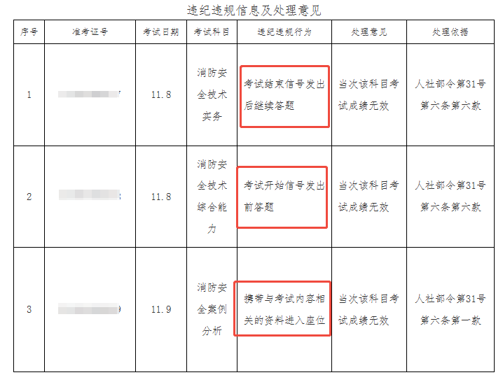 根据《专业技术人员资格考试违纪违规行为处理规定》(人社部令第31号)相关条款规定,现将本市2025年度全国一级注册消防工程师资格考试中已认定的违纪违规考生信息和处理意见公告如下,考生如对所认定的违纪违规事实存在异议,可在公告发布之日起5个工作日内向我院陈述和申辩,逾期未陈述申辩的视为认可违纪违规事实和处理意见。联系电话:96999001。对评卷过程中发现的违纪违规行为,按照相关规定进一步处理。