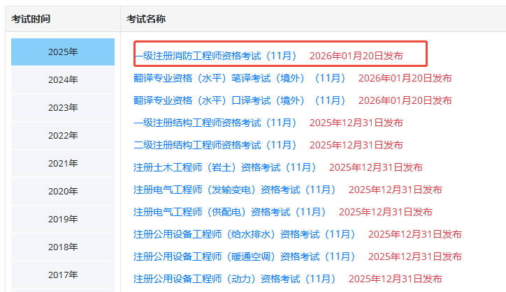 3. 选择年份和“一级注册消防工程师资格考试”即可。