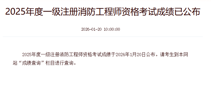 中国人事考试网正式官宣!2025年度一级消防工程师考试成绩已于1月20日公布!