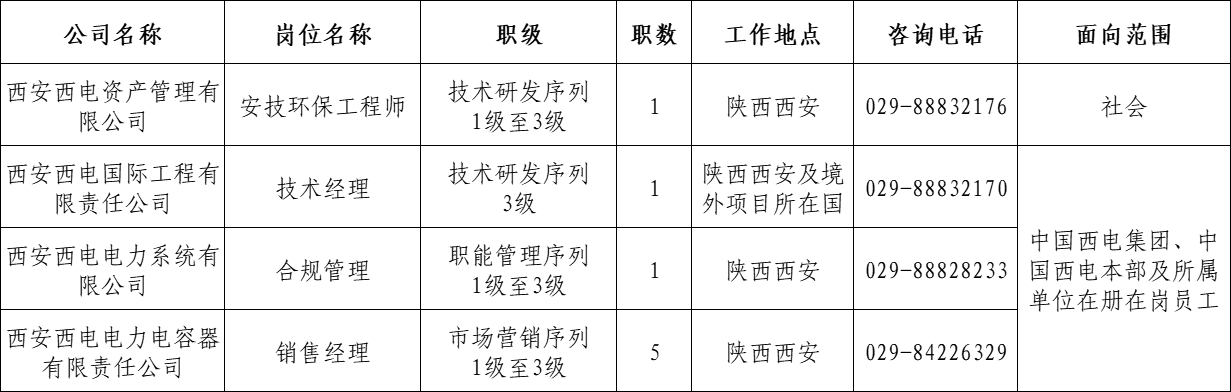 原文标题:中国西电集团及中国西电所属企业公开招聘公告