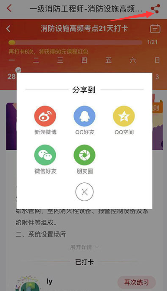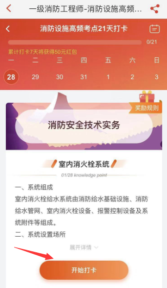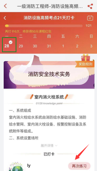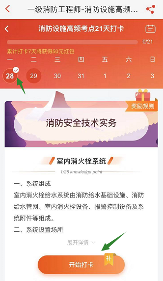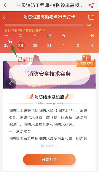 在活动页参与打卡,并累计21天完成每天某一个考试中某一个科目的知识点练习。