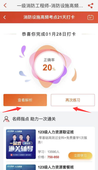 2、查看解析or再次练习,如果对知识点掌握不够的,可以查看解析或再次练习。