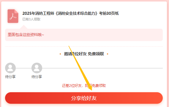 本资料为233网校购课学员专属资料,含金量较高!因此,想要免费获得【一消考前30页纸】电子版资料的非购课考生,需要参加相应活动才能领取哟。具体步骤如下: