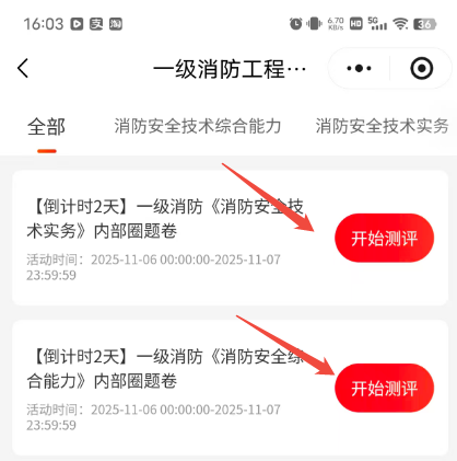⭕测评科目:《消防安全技术实务》、《消防安全技术综合能力》
