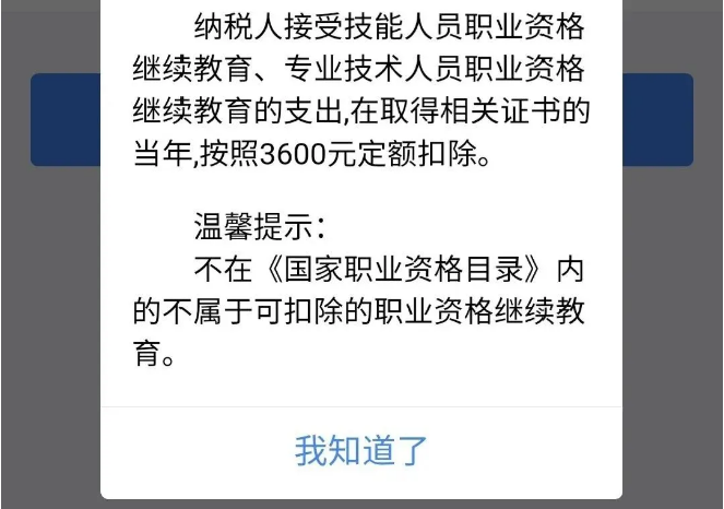 提醒二:纳税人填报职业资格继续教育的,应当在取得相关证书的当年享受扣除。