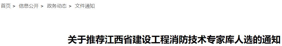 为做好全省建设工程消防设计审查验收工作,经研究,决定组建江西省建设工程消防技术专家库。现就推荐专家库成员有关事项通知如下: