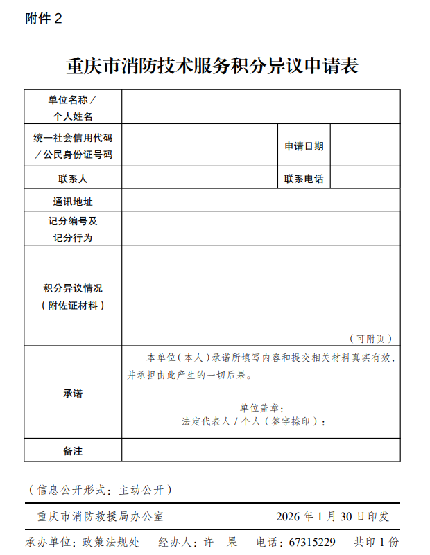 2.重庆市消防技术服务积分异议申请表