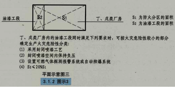 丁类、戊类厂房内的油漆工段≤20% | 1、封闭喷漆工艺 |