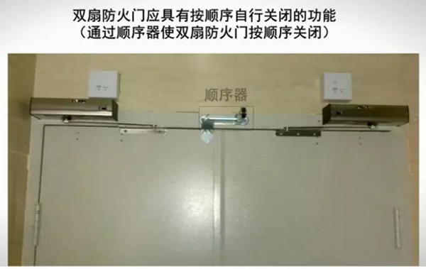 双扇、多扇防火门设置盖缝板或止口的应安装顺序器(特殊部位使用除外)