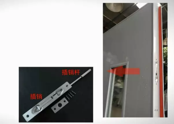 应采用钢质防火插销,应安装在双扇防火门或多扇防火门的相对固定一侧的门扇上(若有要求时)