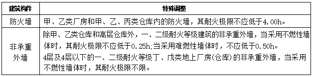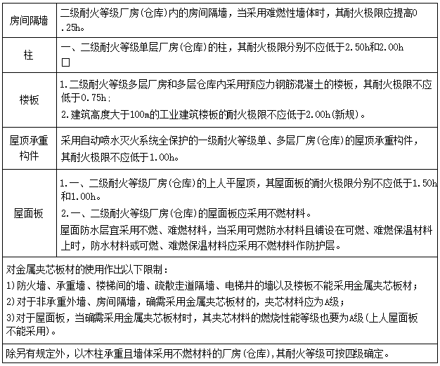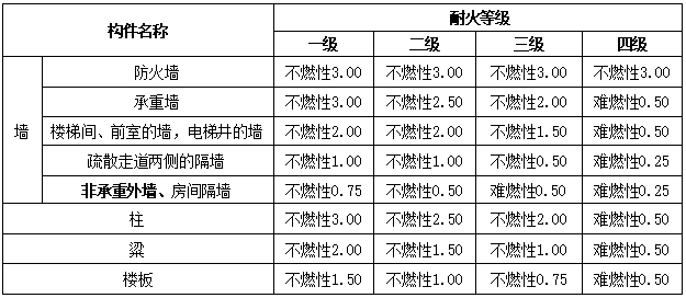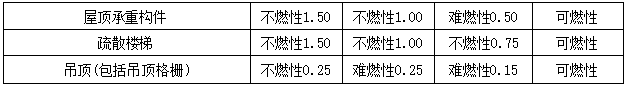 不同耐火等级厂房和仓库建筑构件的燃烧性能和耐火极限(h)
