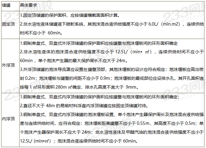2)对于水溶性可燃液体和对普通泡沫有破坏作用的可燃液体固定顶储罐,应为液上喷射系统;