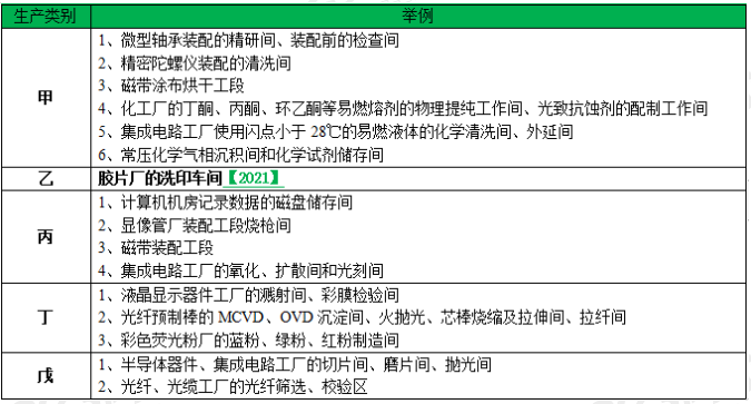 一、火灾危险性分类