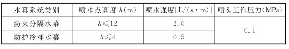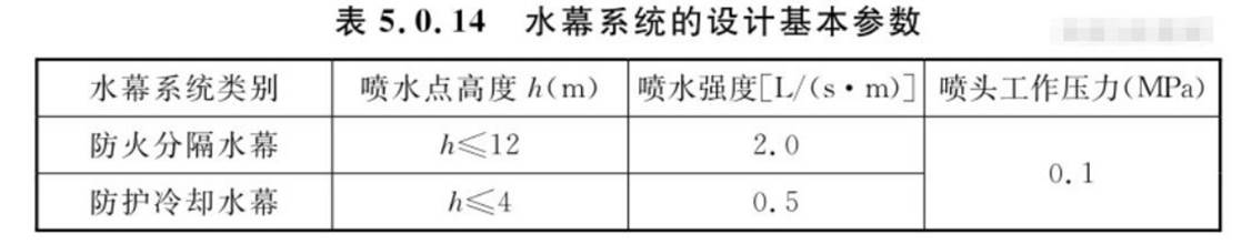 5·0·14 水幕系统的设计基本参数应符合表 5·0·14的规定: