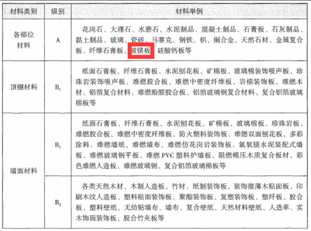 表2-10-3常用建筑内部装修材料燃烧性能等级划分举例: