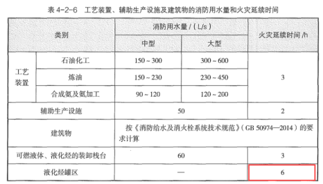 A.液化烃罐区的消防用水量按火灾延续时间3h确定