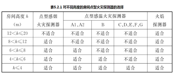 参照《火灾自动报警系统设计规范》表5.2.1,A正确,点型感烟火灾探测器房间净高不超过12m,点型感温火灾探测器房间净高不超过8m,故BE错误。