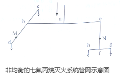 47、某含有两个封闭空间的场所采用七氟丙烷灭火系统进行防护,灭火系统管网为非均衡系统,如下图所示。其中 bM=be,ab+bc=ae+eN。该系统的七氟丙烷气体剩余容积量为( )。