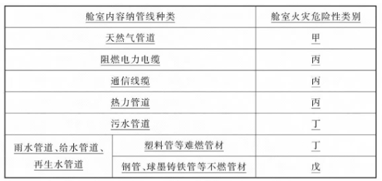 A.阻燃电力管道舱室,火灾危险性为丙类