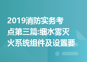 一、灭火机理、分类、适用范围、设置要求 类别相关内容灭火机理①吸热冷却 ②隔氧窒息 ③辐射热阻隔 ④浸湿作用分类⑴、按工作压力分类: 低压系统:工作压力小于或等于1.21MPa 中压系统:工作压力大于1.21MPa且小于3.45MPa 高压系统:工作压力大于3.45MPa ⑵、按应用方式分类 ①全淹没式系统:适用于扑救相对封闭空间内的火灾。 ②局部应用式系统:适用于扑救大空间内具体保护对象的火灾。 ⑶、按动作方式分类:开式系统/闭式系统 ⑷、按供水查看更多>