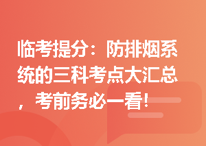 考点一:设置范围系统类型建筑类型设置情形/位置防烟设施所有建筑①建筑内的防烟楼梯间及其前室②消防电梯间前室或合用前室③避难走道的前室④避难层(间)记忆口诀:提前走毙(避)。排烟设施民用建筑①设置在一、二、三层且房间建筑面积大于100㎡和设置在四层及以上或地下、半地下的歌舞娱乐放映游艺场所;②中庭;③公共建筑中建筑面积大于100㎡且经常有人停留的地上房间;④建筑面积大于300㎡且可燃物较多的地上房间;⑤建筑中长度大于20m的疏散走道。记忆口诀:一二三层100平,地下四层和中庭;常人100可300,查看更多>