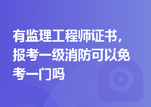 问题:你好!我有国家注册监理工程师证书,符合一级注册消防工程师免考条件吗?报考消防工程师能免考一门吗?回复:你好,通过全国统一考试取得一级注册建筑师资格证书,或者取得勘察设计各专业注册工程师资格证书的(勘察设计行业:注册土木工程师、注册电气工程师、注册公用设备工程师、注册化工工程师、注册环保工程师、注册结构工程师),可免试《消防安全技术实务》科目,只参加《消防安全技术综合能力》和《消防安全案例分析》2个科目的考试。>>点击查看更多一级消防工程师报考问题<<[NoPage]查看更多>
