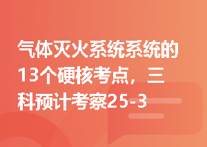 考点一:系统灭火机理灭火剂种类灭火机理二氧化碳窒息、气化冷却七氟丙烷窒息、气化冷却、分解化学抑制惰性气体(IG541)窒息(将防护区氧气将至15%)考点二:系统分类与组成系统分类方式类别具体内容按使用灭火剂分类二氧化碳灭火系统高压系统(灭火剂在常温下储存):5.17 Mpa低压系统(在-20℃~-18℃下储存):2.07 Mpa七氟丙烷灭火系统七氟丙烷灭火剂及其分解产物对人体有毒害性危险。惰性气体灭火系统/按系统结构特点 分类无管网灭火系统又称预制灭火系统,适用于较小的、无特殊要求的场所。管网灭查看更多>