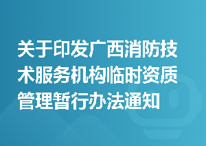 关于印发《广西消防技术服务机构临时资质管理暂行办法》的通知各市公安消防支队、大队,社会各有关单位:为加强消防技术服务机构临时资质管理,确保消防技术服务机构临时资质审批工作规范有序,根据《中华人民共和国消防法》、《社会消防技术服务管理规定》、《关于贯彻实施<社会消防技术服务管理规定>的通知》(公消[2014]122号)和《关于继续实行消防技术服务机构临时资质管理的通知》(公消[2016]420号)等法律法规、文件精神,总队结合实际制订了《广西消防技术服务机构临时资质管理暂行办法》,现印查看更多>