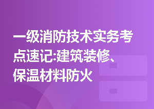 第十章 建筑装修、保温材料防火本章重点1、建筑装修材料的分类与分级2、高层、多层、单层公共建筑装修防火的基本要求3、装修防火的通用要求考点梳理……考点笔记第一节 装修材料的分类与分级1、按实际应用分类:饰面材料、装饰件、隔断、大型家具、装饰织物2、按使用部位和功能分类:顶棚装修材料、墙面装修材料、隔断装修材料、固定家具、装修织物、其他装修材料3、分级标准分级材料的燃烧性能分级常用材料等级划分4、常用装修材料等级规定纸面石膏板和矿棉吸声板、胶合板、壁纸、涂料、多层和复合装修材料、多孔或泡沫状塑料…查看更多>