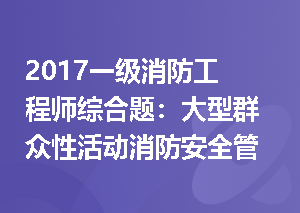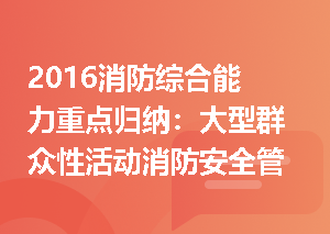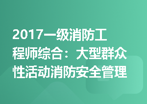 消防安全技术综合能力第五篇消防安全管理章节重点及试题测试:第六章大型群众性活动消防安全管理章节重点:1、概述主要特点火灾因素安全保卫工作2、消防安全管理要求:消防安全责任、指导思想、工作原则、组织体系、工作职责、档案管理3、消防工作实施实施:前期筹备阶段、集中审批阶段、现场保卫阶段工作内容:防火巡查、防火检查、灭火和应急疏散预案总结:本章主要讲述大型群众性活动消防安全管理的相关规定和要求。重点在于大型群众性活动的消防安全管理要求的相关内容。本章测试试题:根据《大型群众性活动安全管理条例》(中华人查看更多>