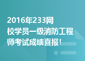 2016年一级消防工程师成绩查询基本告一段落,233网校学员们在查到成绩的第一时间,就发来了他们的喜报。功夫不负有心人,祝贺学员们得偿所愿!非常感谢学员们一直以来的支持,在此道一声感谢!同时,为表鼓励, 233网校为所有全科通关学员颁发丰厚奖学金。以下为部分学员成绩信息的截图,与大家一起分享!  附:233网校2016年一级注册消防工程师全科通关精英榜(含通关经验)>>点击查看更多2016年全科通关学员[NoPage]查看更多>