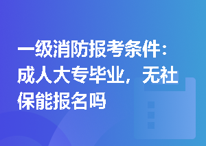 233网友提问:目前没有社保,成人大专今年七月毕业,可以参加报名吗?233网校回复:您好!报考一级注册消防工程师考试须同时满足学历、专业、工作年限以及从事消防安全技术工作年限即可。工作年限,是指报名人员取得规定学历前后工作时间的总和,其截止日期为当年年底。工作年限包括两点要求,一是工作时间满足要求,一是消防安全技术的工作年限满足要求。一般情况下,自考、成考、函授等非全日制学历,工作年限可以累加计算。具体需按照当地学历认可标准来算。目前各地一级消防工程师报考社保要求不一样,可参考2018年一级消防查看更多>