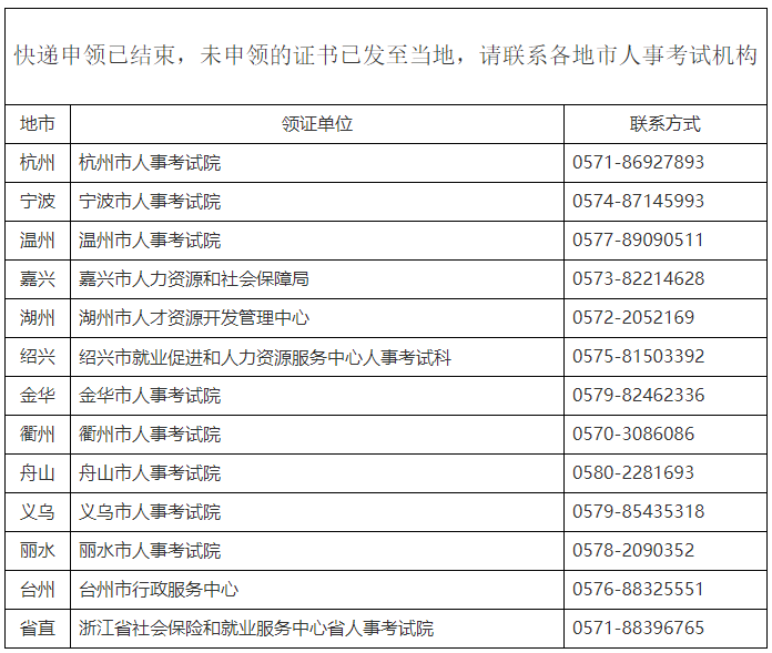 2022年浙江一级注册消防工程师快递申领已结束,未申领的证书已发至当地,请联系各地市人事考试机构。