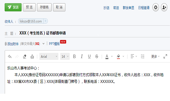 如需邮寄领取,请将本人手持身份证照片及领证申请发送至乐山市人事考试中心电子邮箱,并来电告知申请办理。