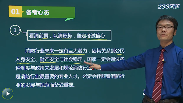 说到一级注册消防工程师考试,大家必定想到“专业性强、命题广、监考严”!想要通关,99%的考生都会选择参加培训。说到消防培训自然选择233网校。233网校是一级注册消防工程师鼻祖级培训机构,早在2014年就开办了一级消防工程师网校,是业内开设最早的消防工程师网校。目前不管是从师资还是课程设置甚至学员评价,都是行业之颠!话不多说,直接来听听消防讲师黄明峰对于2017年的课程设置讲解,试听网校的课程质量吧!